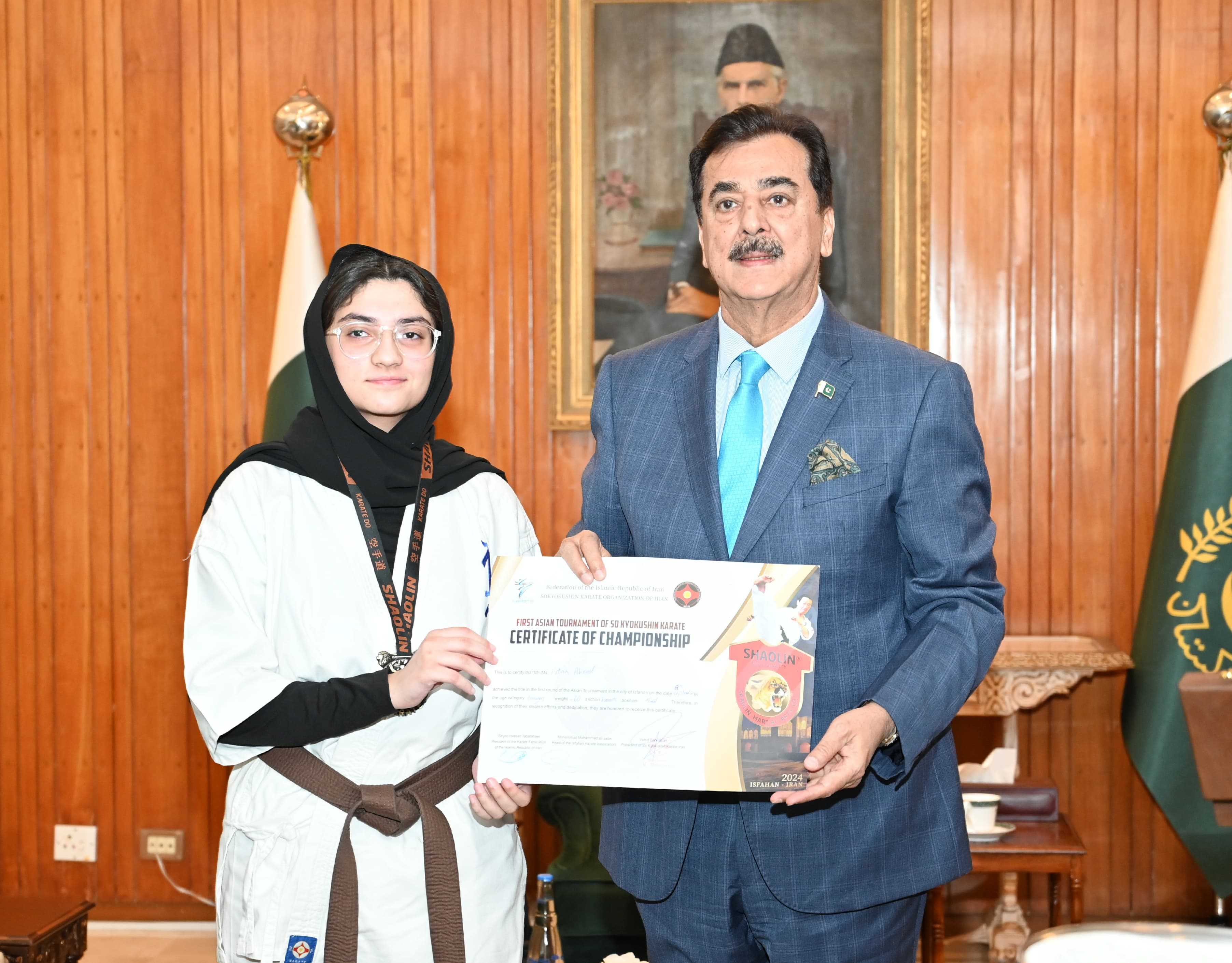 Acting President of Pakistan, Syed Yousuf Raza Gilani, meets with Pakistan's young Karate Champion, Fatima Ahmed Khan
