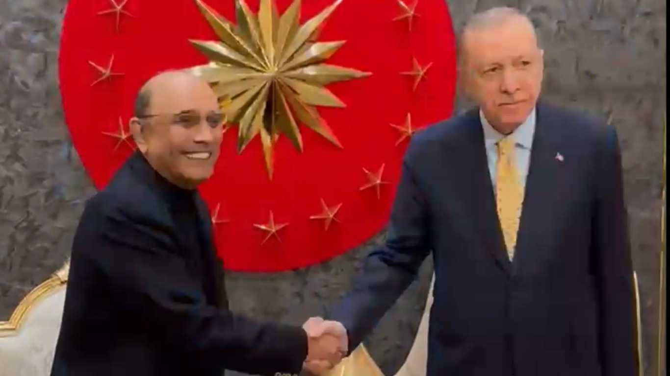 President Asif Ali Zardari meets Turkish President Recep Tayyip Erdogan during his visit to Portugal