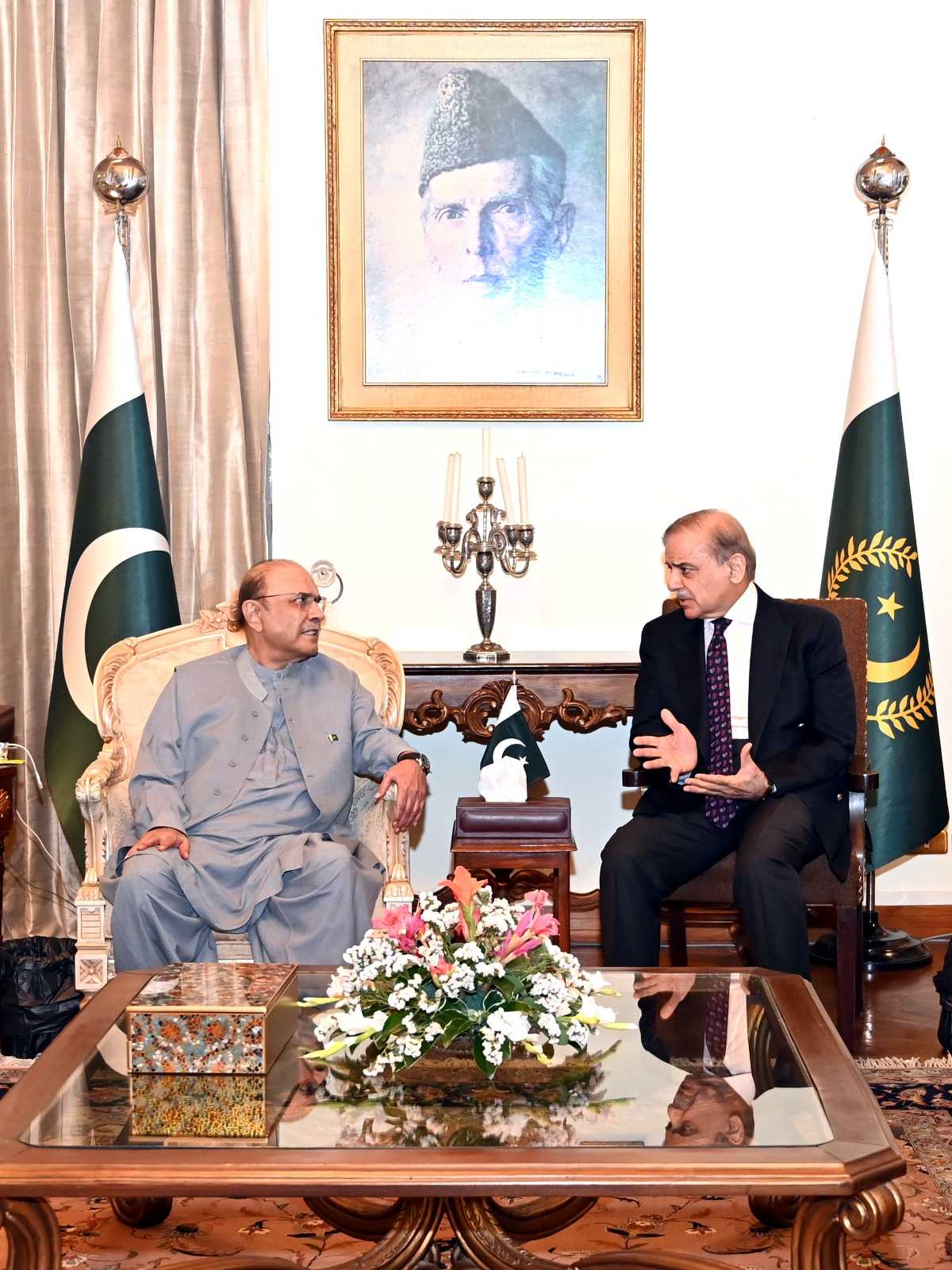 Prime Minister Muhammad Shehbaz Sharif called on President Asif Ali Zardari at Aiwan-e-Sadr