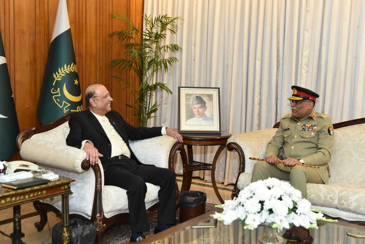 Islamabad,24 November 2025: Chairman Joint Chiefs of Staff Committee General Sahir Shamshad Mirza called on President Asif Ali Zardari for his farewell meeting at Aiwan-e-Sadr today.