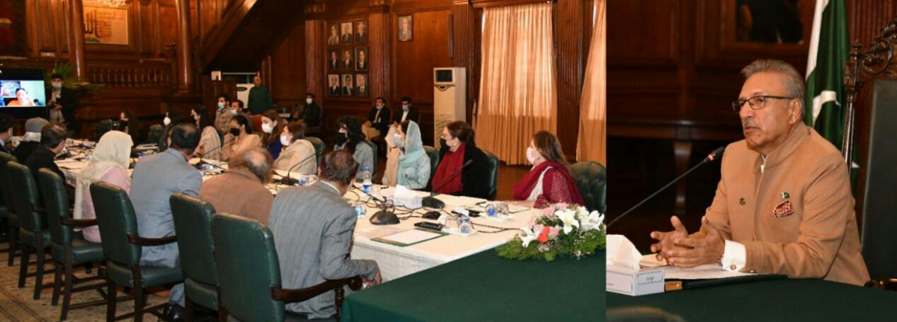 Lahore, 04 February 2022: President Dr Arif Alvi has called for developing a comprehensive strategy to promote cultural heritage of the country, including Pakistani apparels, garments, arts and crafts, at international level to further enhance Pakistan’s exports. He urged the need to establish collaborations and synergies among the relevant industry stakeholders and foster academia-industry linkages for developing Pakistan’s fashion industry to its fullest potential, besides improving the access of local fashion brands to international markets. The President made these remarks during a meeting with Lahore’s fashion designers regarding the promotion of Pakistan’s image in the international fashion and garments industry, at Governor House, Lahore, today. The meeting was also attended by Director General TDAP, Punjab, Mr Shahzad Ahmed Khan, Patron-in-Chief of All Pakistan Textile Mills Association, Mr Gohar Ijaz, Vice Chancellor of the Pakistan Institute of Fashion and Design, Lahore, Prof. Hinna Tayaba and senior officials of the Government.